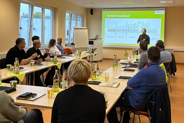 11 Vertreter von Kläranlagenbetreibern aus 6 hessischen Kommunen wollten sich selbst ein Bild machen und folgten am 14. November der Einladung der THE PAULY GROUP zum Praxistag auf dem Gelände der Kläranlage Rotenburg an der Fulda. Darunter Klärmeister, Klimaschutzmanager, technische Leiter und Abteilungsleiter. Seit 2017 entwässert die Kläranlage Rotenburg-Braach ihren gesamten Klärschlamm mit einer Klärschlammvererdungsanlage. Nach einer Vorstellung des Verfahrens durch Stefan Rehfus von der THE PAULY GROUP berichtete der Leiter der Stadtwerke Rotenburg, Stephan Heckeroth, ausführlich über die Erfahrungen mit dem Betrieb.
