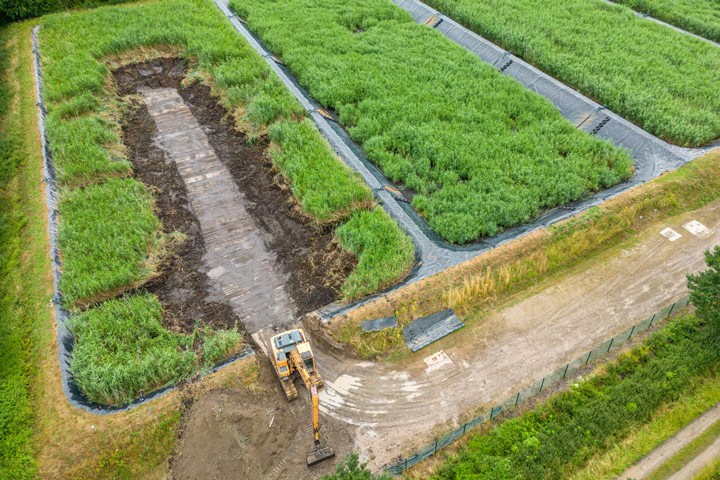 Um die Entsorgungsmenge zu verringern, wird Klärschlamm entwässert. In den meisten Kläranlagen leisten dies energiehungrige Maschinen. Eine Alternative ist das ökotechnische Verfahren der Klärschlammvererdung. Dabei wird der Nassschlamm in Schilfbeete geleitet und durch Verdunstung sowie Rücklauf des Filtrats zur Kläranlage entwässert. Zusätzlich laufen im Beet biologische Prozesse ab, die organische Substanz abbauen, Krankheitserreger abtöten und den Schlamm in stark humushaltige Klärschlammerde verwandeln. Die Vererdung reduziert die Restmenge im Vergleich zur maschinellen Entwässerung noch einmal um bis zu 50 Prozent. Durch diese Massenreduktion erhöht sich automatisch der Phosphatanteil in der Klärschlammerde. Klärschlammerde ist hervorragend zur Humusdüngung und Verbesserung der Bodenfruchtbarkeit geeignet und enthält einen hohen Anteil pflanzenverfügbaren Phosphats. Eigenschaften, die Klärschlammerde bei Landwirten besonders beliebt macht und seit Jahren zu einer stetig steigenden Nachfrage führen. Durch den Zusatz von Kalk kann ein Dünger hergestellt werden, der keine wesentlichen Gehalte an Stickstoff enthält und deshalb auch während der Sperrfristen für stickstoffhaltige Düngemittel verwendet werden darf. Beide Düngerarten werden unter den Markennamen EKO-Terra und EKO-Terra Ca+ vertrieben. Durch die landwirtschaftliche Verwertung von Klärschlammerde werden Nährstoffkreisläufe geschlossen und das zukünftig vorgeschriebene Phosphorrecycling direkt umgesetzt.
