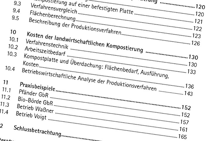 Die KTBL-Schrift gibt Empfehlungen für die optimale Prozessführung und hilft Prozessstörungen zu erkennen und zu beseitigen. Das Verfahren der gelenkten Mietenkompostierung wird ausführlich vorgestellt und Daten zu Nährstoff-, Umwelt- und Kostenaspekten geliefert, mit denen Landwirte den Einstieg in die eigene Kompostierung kalkulieren können. Auch Beratungskräfte und Beschäftigte von Genehmigungsbehörden erhalten wertvolle Informationen.