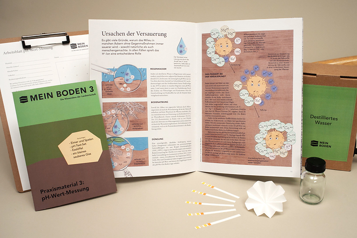 MEIN BODEN kommt „frei Hof“ in Form thematischer Wissensboxen. Jede Box enthält ein hochwertiges Magazin, das komplexe biologische und chemische Zusammenhänge verständlich erklärt, wissenschaftlich fundiert und praxisnah aufbereitet. Für die praktischen Untersuchungen des eigenen Bodens enthält jede Box klare Schritt-für-Schritt-Anleitungen, die helfen, das Gelernte sofort umzusetzen. Die dafür benötigten Werkzeuge und Geräte sind ebenfalls enthalten. So können alle Untersuchungen leicht selbst und in eigener Zeit durchgeführt werden, von der Probenahme bis zur Auswertung. Die Themen reichen von allgemeiner Bodenkunde, Bodenphysik und Bodenchemie über Bodenverdichtung und ‑erosion bis zu Humuswirtschaft und Bodenfruchtbarkeit. So entsteht ein umfassendes Gesamtverständnis für den Boden als lebendiges und dynamisches System und ein genaues Bild vom Aufbau und den individuellen Eigenschaften des eigenen Bodens. Denn wer seinen Boden kennt und die darin ablaufenden Prozesse versteht, kann die Bewirtschaftung daran ausrichten, Stabilität und Bodenfruchtbarkeit sichern und mittel- und langfristig bessere Erträge erzielen.