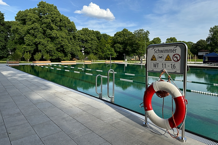 Um Punkt 11 Uhr war es endlich soweit: Das rote Band wurde feierlich durchschnitten und die ersten Badegäste strömten ins Bad, aufgeregt und neugierig, was sie nach zwei Jahren Umbau nun erwarten würde. Und sie wurden nicht enttäuscht. Klares, türkis schimmerndes Wasser umrahmt von Holzstegen, Grünflächen und einem Sandstrand. Neue Sanitär- und Umkleidegebäude in eleganter Holzbauweise und dahinter großzügige Grünanlagen mit altem Baumbestand. „Hier ist ein Juwel entstanden“, brachte es Münchens Wirtschaftsreferenz Christian Scharpf in seiner Eröffnungsrede auf den Punkt – und meinte damit nicht allein das neue Erscheinungsbild. Denn die naturnahe Gestaltung wird vor allem durch die neue biologische Wasseraufbereitung möglich, die vollständig ohne Chemikalien auskommt und für frisches, natürliches Badewasser sorgt.